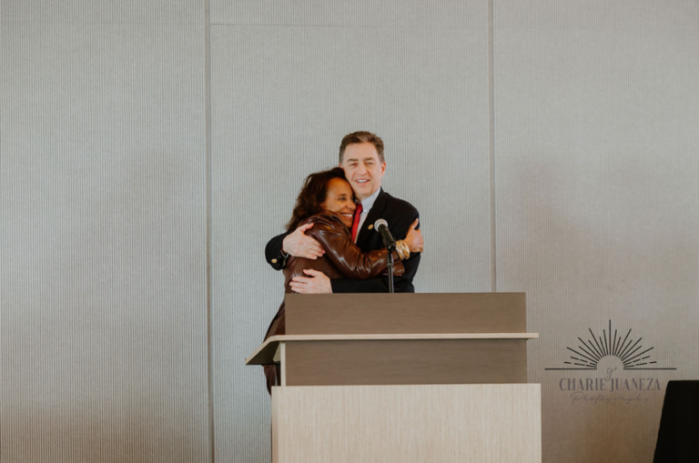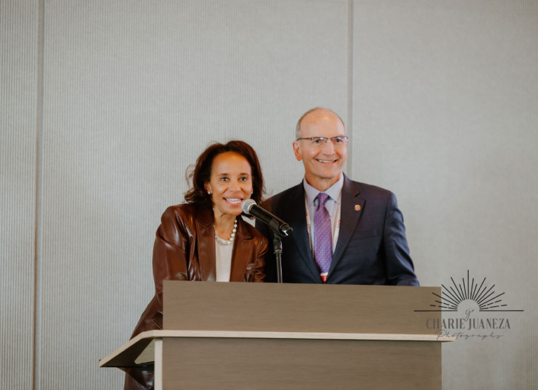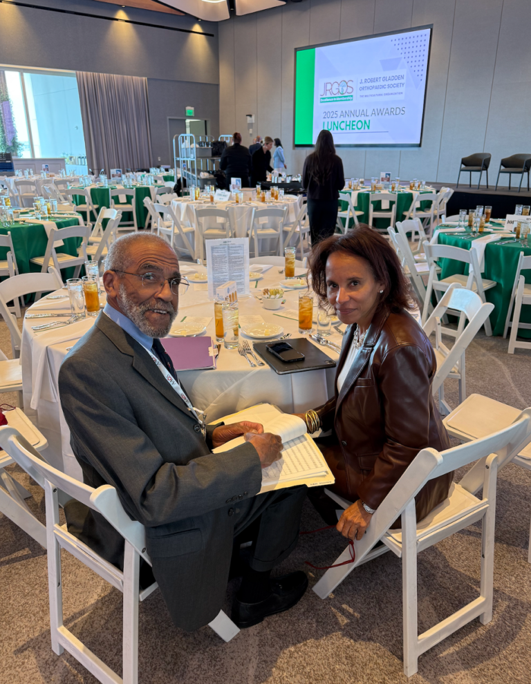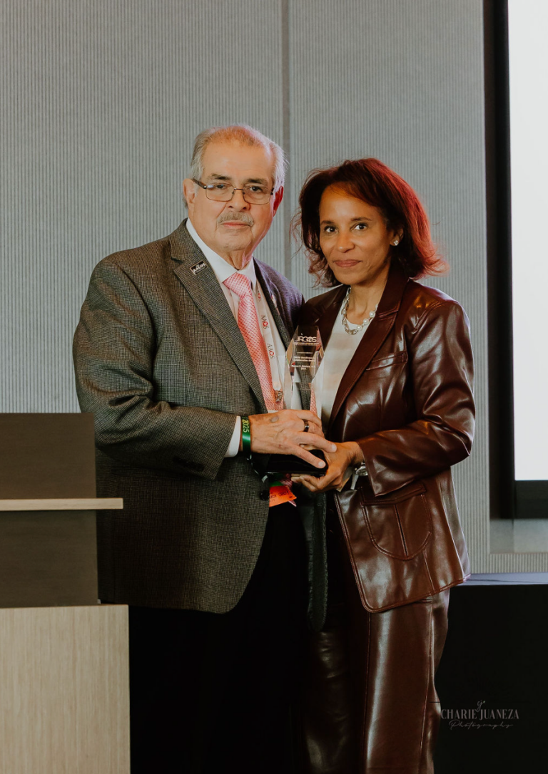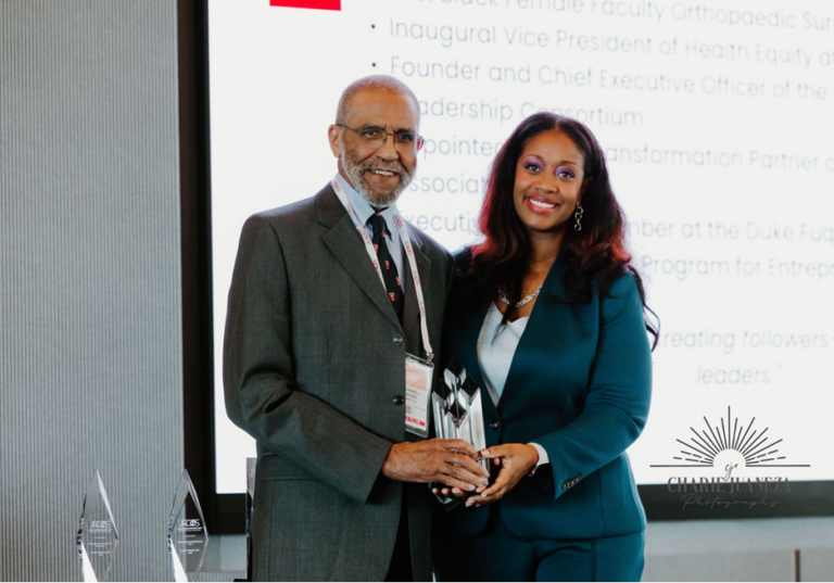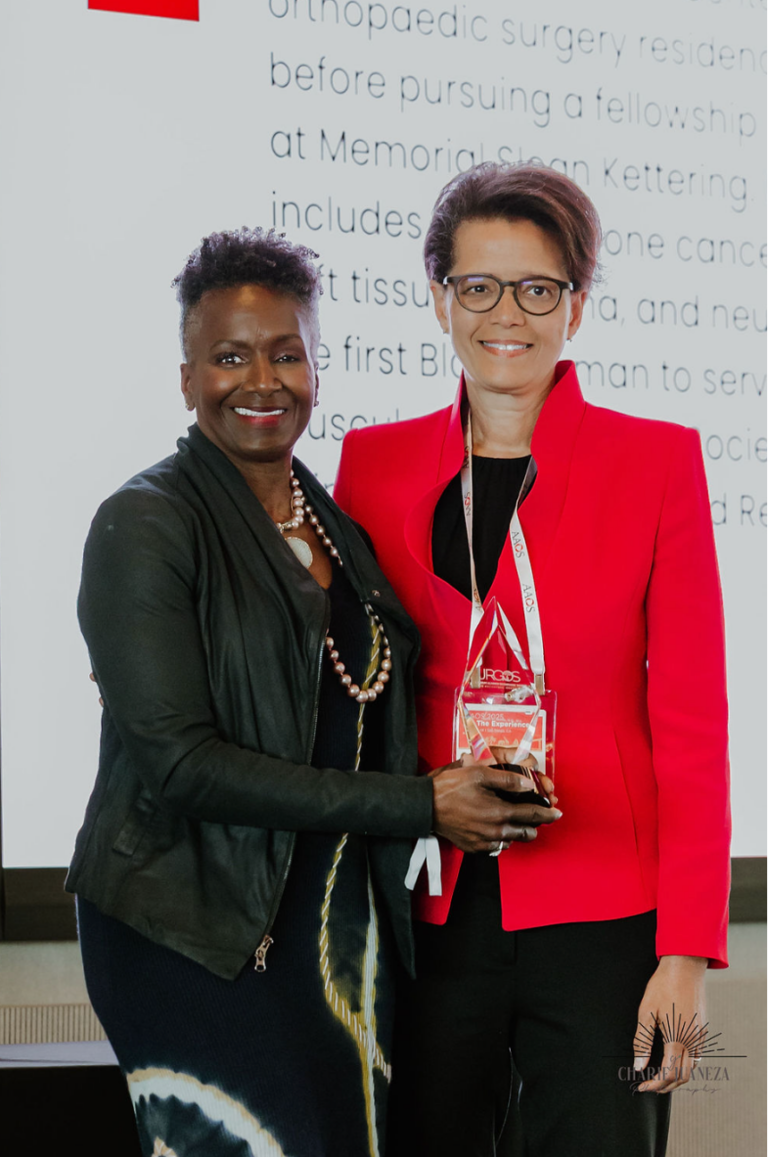 Erica Taylor, MD, MBA receiving the JRGOS Alvin H. Crawford, MD Mentorship Award from Alvin H. Crawford, MD