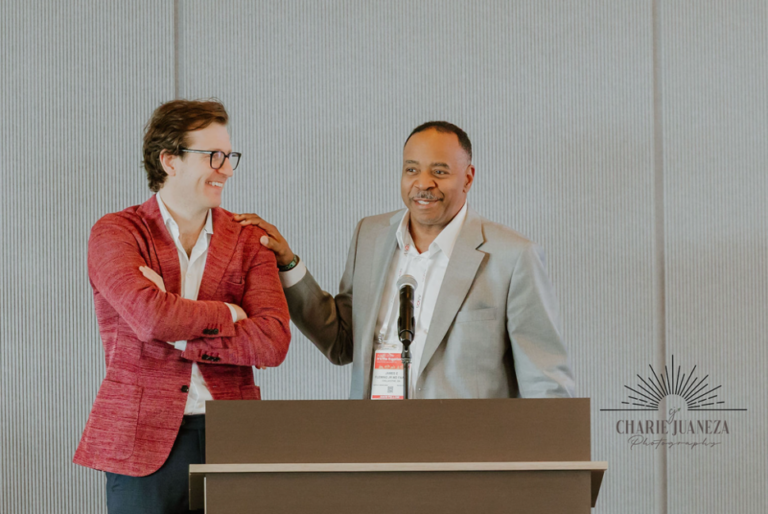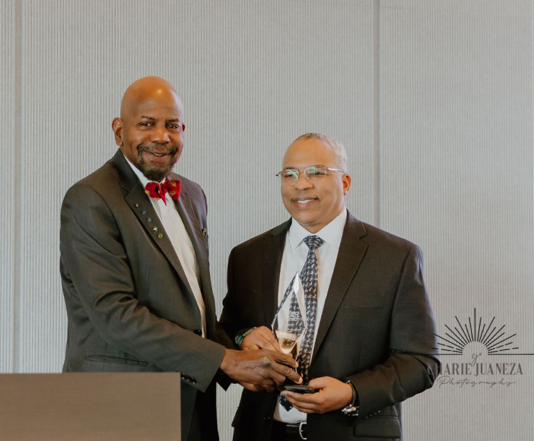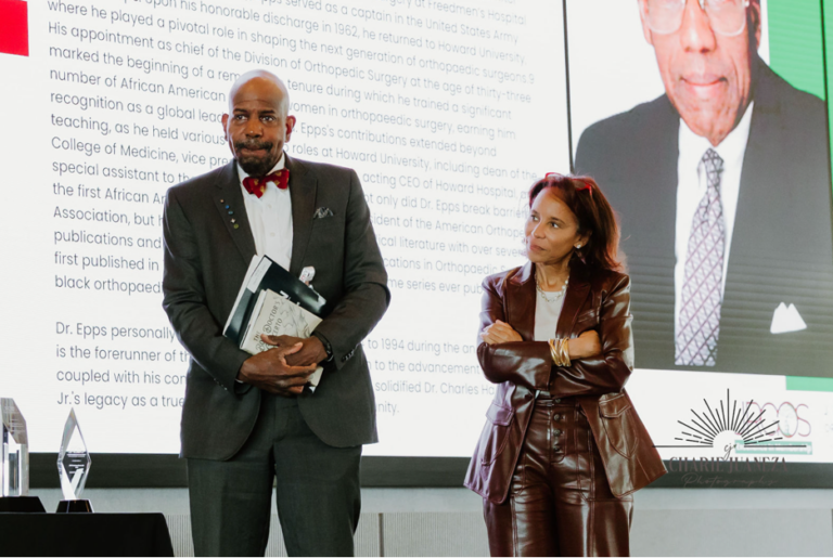 Cato Laurencin, MD, PhD presenting the JRGOS Augustus A. White, III, MD, PhD, Founders Award to Charles H. Epps, Jr., MD’s son