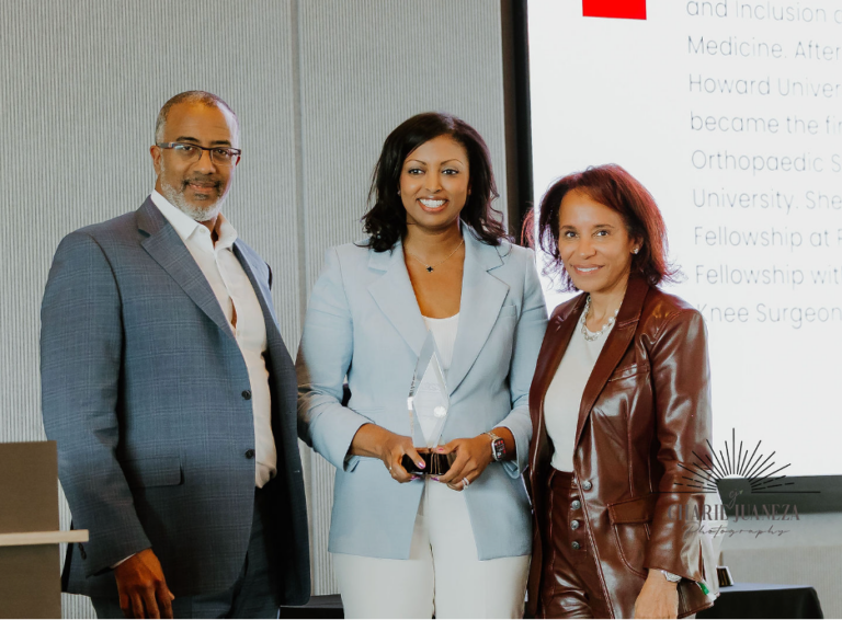 Linda Suleiman, MD receiving the Presidents Health & Equity Award from Melvyn Harrington, MD & Susan E. Stephens, MD